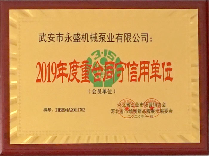 2019重合同守信用企業(yè)